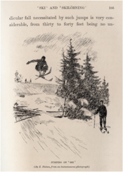 ‘…[O]f late years the sport of ‘skilöbning’ has been practised and developed in Norway to quite an astonishing extent…no doubt largely due to the public competitions which are…annually held…at Christiania…Before this time of resurrection the ‘skistav’ or pole…was generally considered quite as the ‘ski’ themselves…the ‘skilöber’ rode his pole like a witch’s broomstick…but this unlimited and servile use of an extraneous support and assistance…entirely deprives him of all control over his ‘ski’… But the Telemarken peasant…[w]hen he meet us in rivalry at Christiania he soon showed us that when one has really learned to control one’s ‘ski’ without having continual recourse to one’s staff one…can with ease and speed clear obstacles and difficulties before considered insurmountable…’13